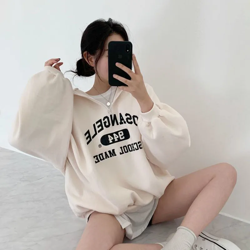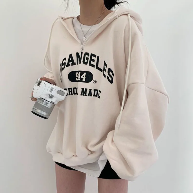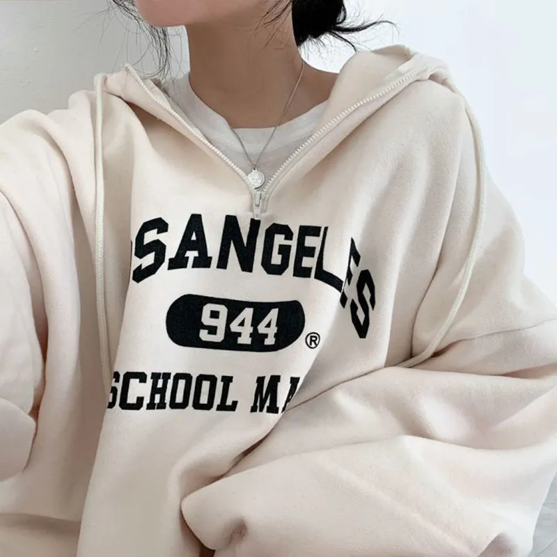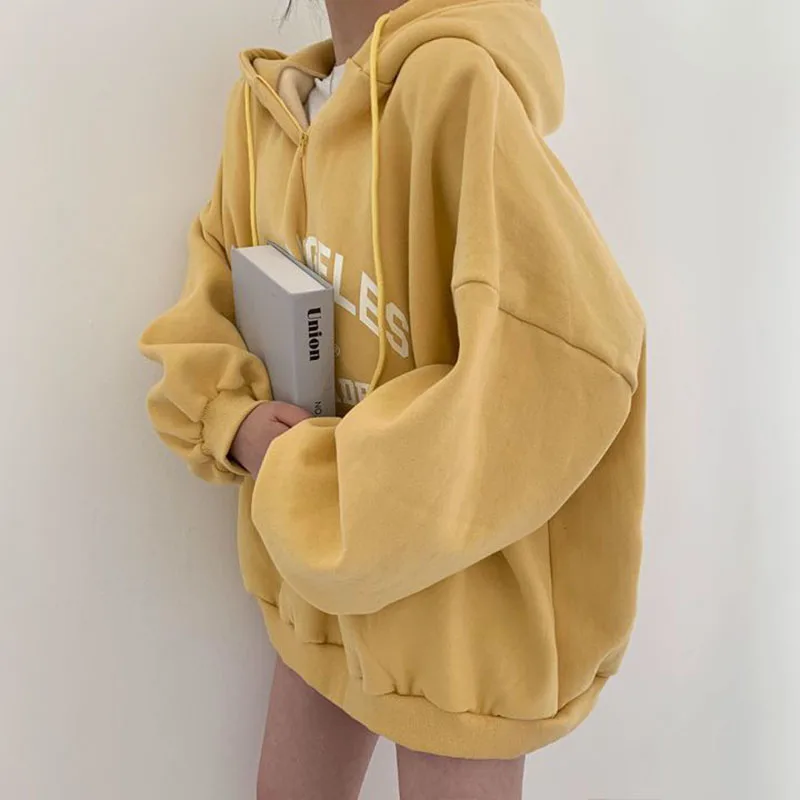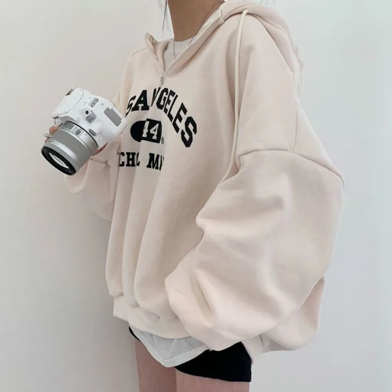 Fashion Letter Print Sweatshirts Women Autumn Winter Loose Preppy Thick Warm Hoodies Harajuku Casual Zipper Hooded Pullovers
